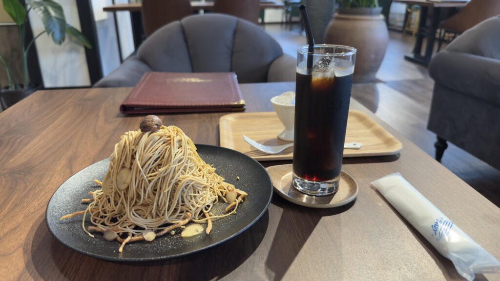 戸隠そばモンブランとアイスコーヒーにしました☺️
