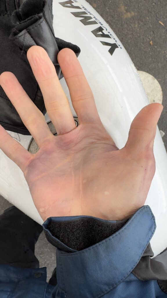 雨で濡れたグローブの色が手に移ってます😅 @東部湯の丸SA上り