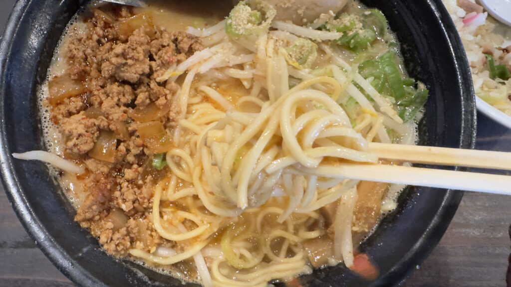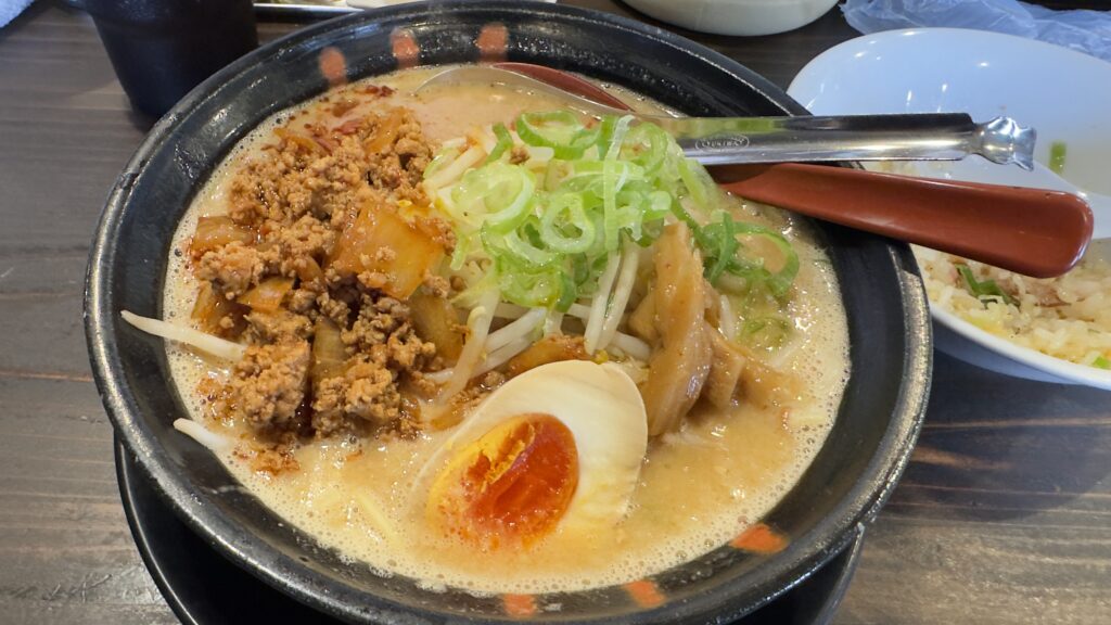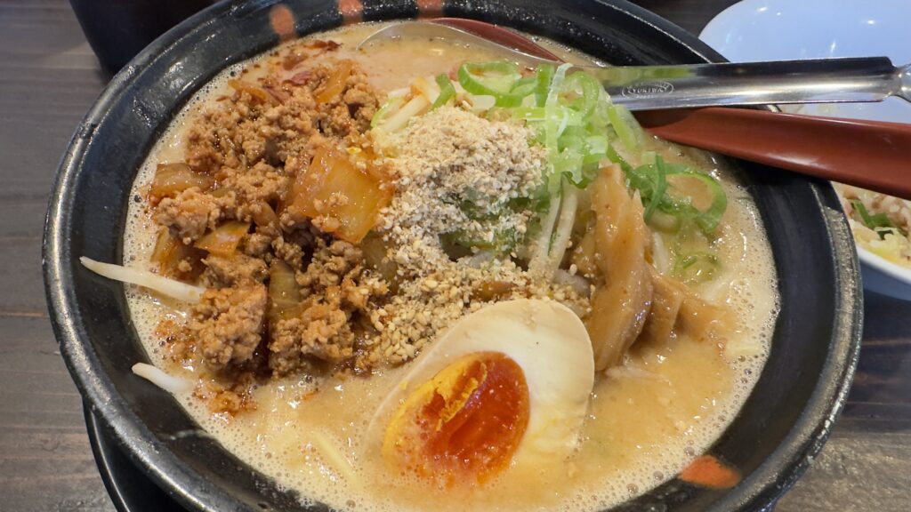 今日のランチは、ゴマ味噌ラーメン細めん、半チャーハンセットにしました☺️
