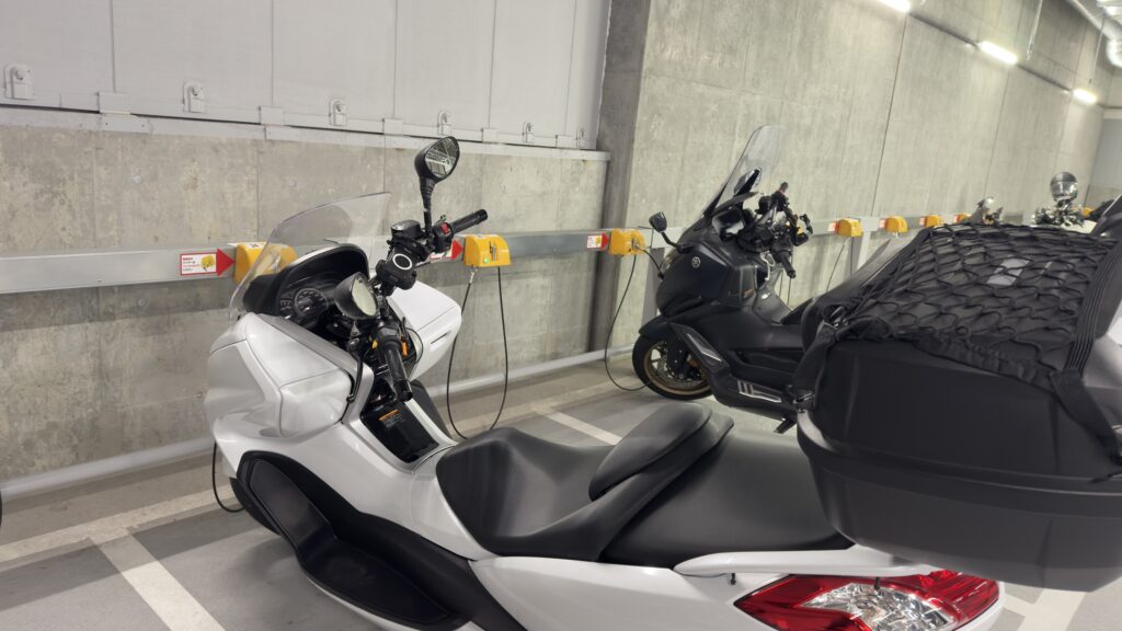 お店の前に停めるわけにはいかないので、駐車場に停めたのはいいのですが、