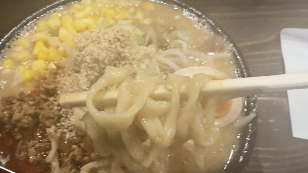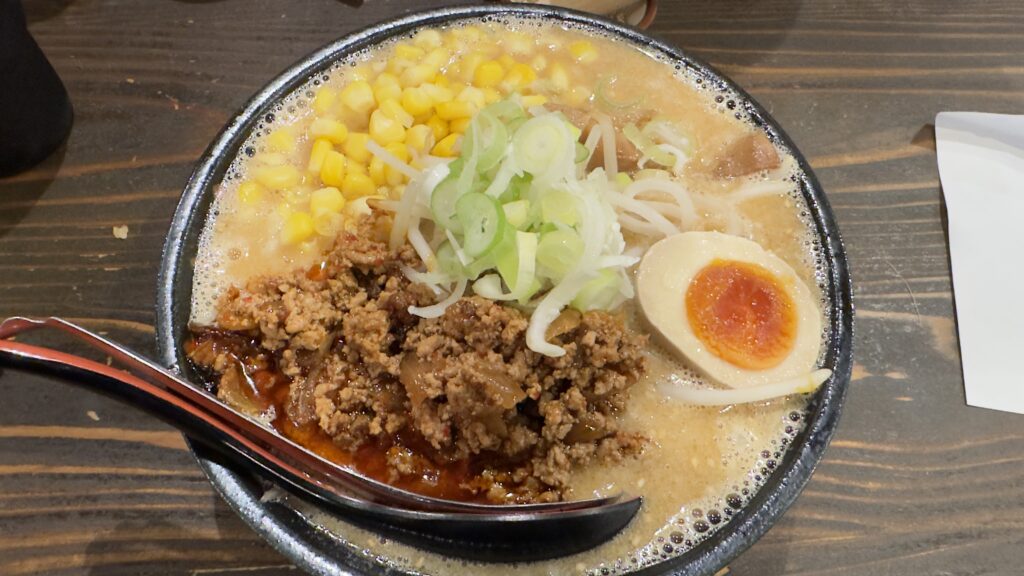 今日のディナーは、ゴマみそラーメン+もっち麺+ガチャ4等のコーントッピングにしました😊